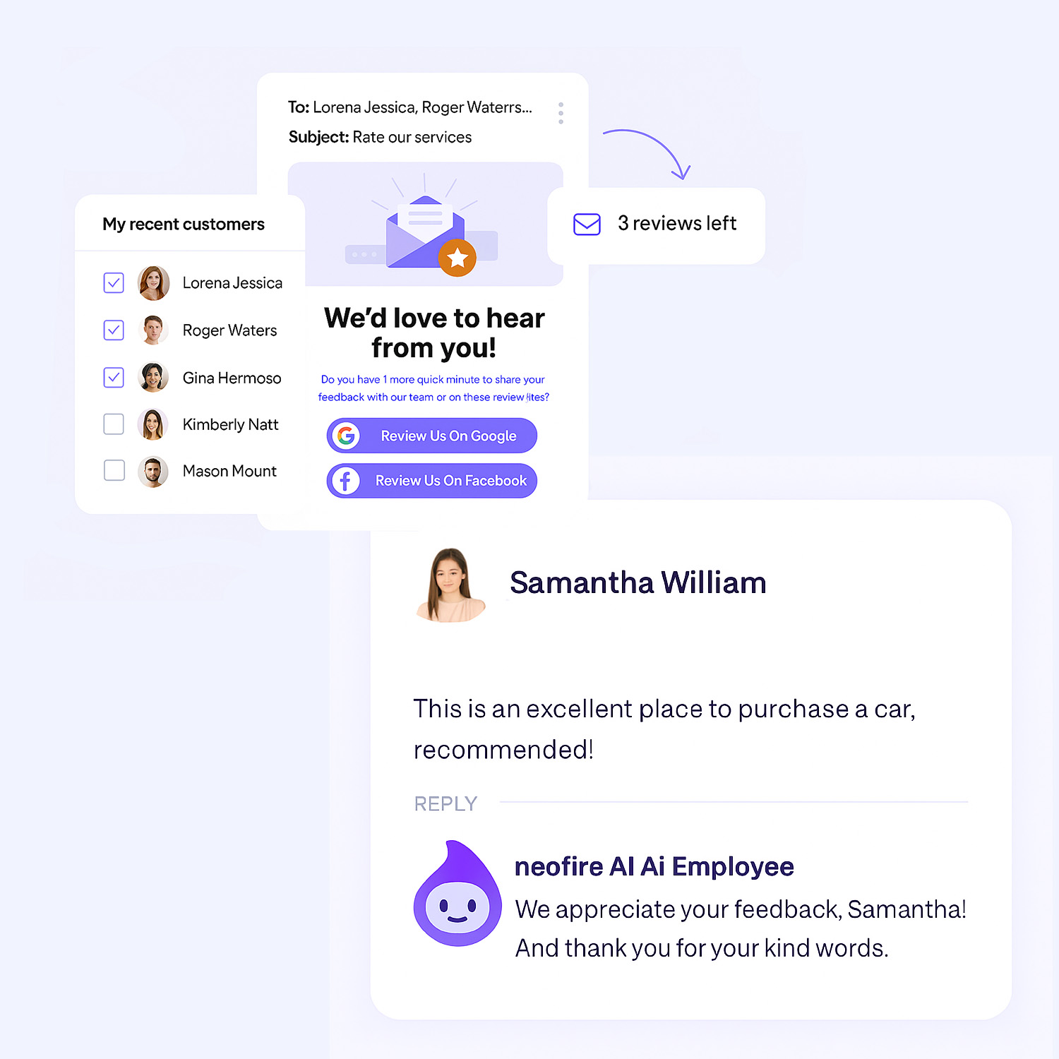 Neofire sends out review requests after each job and replies to feedback instantly on Google and Facebook. Keep your reputation glowing and your online presence active without lifting a finger.